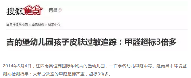 2014年,南昌某幼儿园甲醛超标3倍